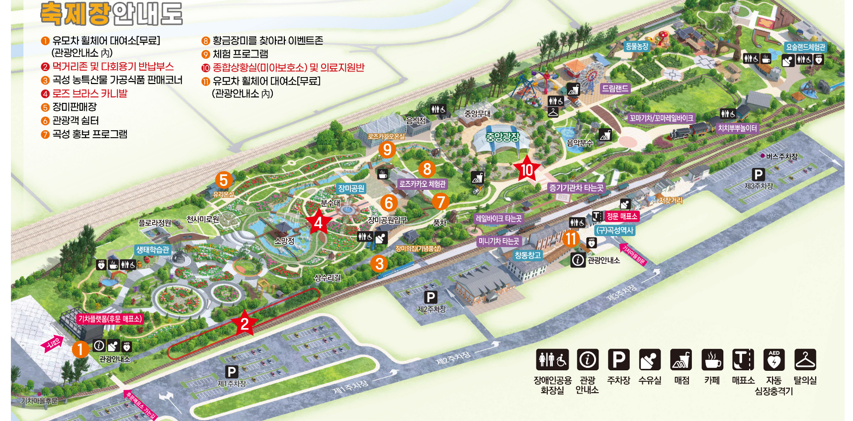 - 축제 장소: 전라남도 곡성군 오곡면 기차마을로 232, 곡성 섬진강기차마을 내 장미공원