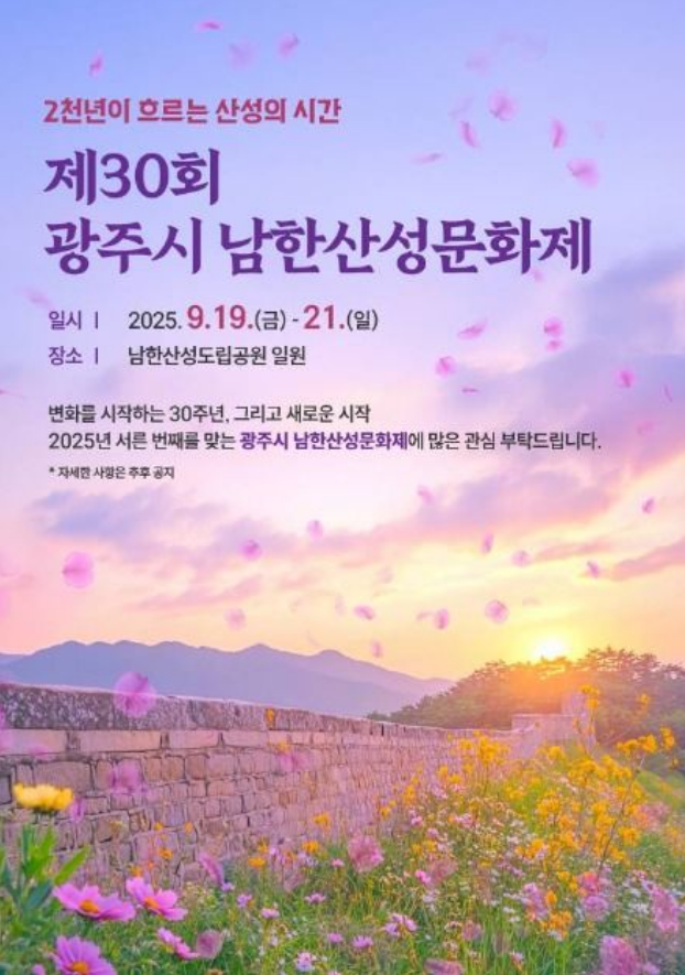 안녕하세요 여러분~! 가을바람이 살랑 불어오기 시작하면 마음도 덩달아 설레는 계절이죠? ^^ 오늘은 2천 년의 깊은 역사를 품고 선선한 가을을 맞이하는 아주 특별한 축제 소식을 들고 왔어요. 바로 제30회 광주시 남한산성문화제랍니다! 심지어 대부분의 프로그램이 무료라고 하니, 이거 정말 놓치면 안 되겠죠?!