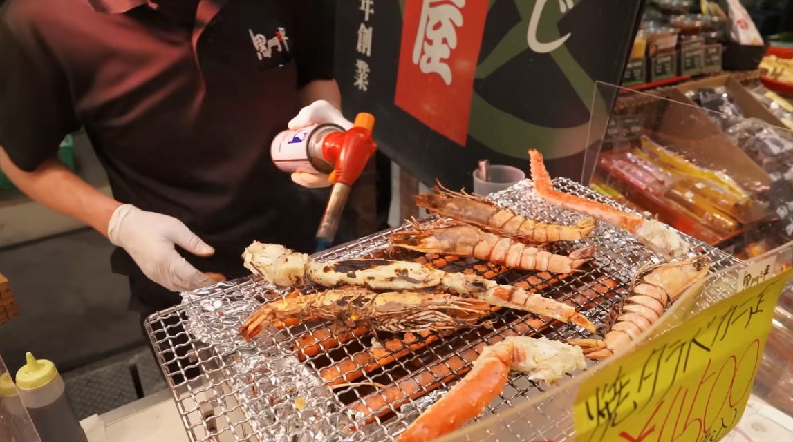 구로몬시장은 정말 눈과 입이 즐거운 곳이에요. 향긋한 우니(성게알) 와 신선한 마구로(참치) 는 기본이고요, 버터 풍미 가득한 크루아상, 지글지글 익어가는 타코야키, 큼지막한 킹크랩 다리 구이 등등! 발걸음을 옮길 때마다 맛있는 유혹이 끊이지 않아요.