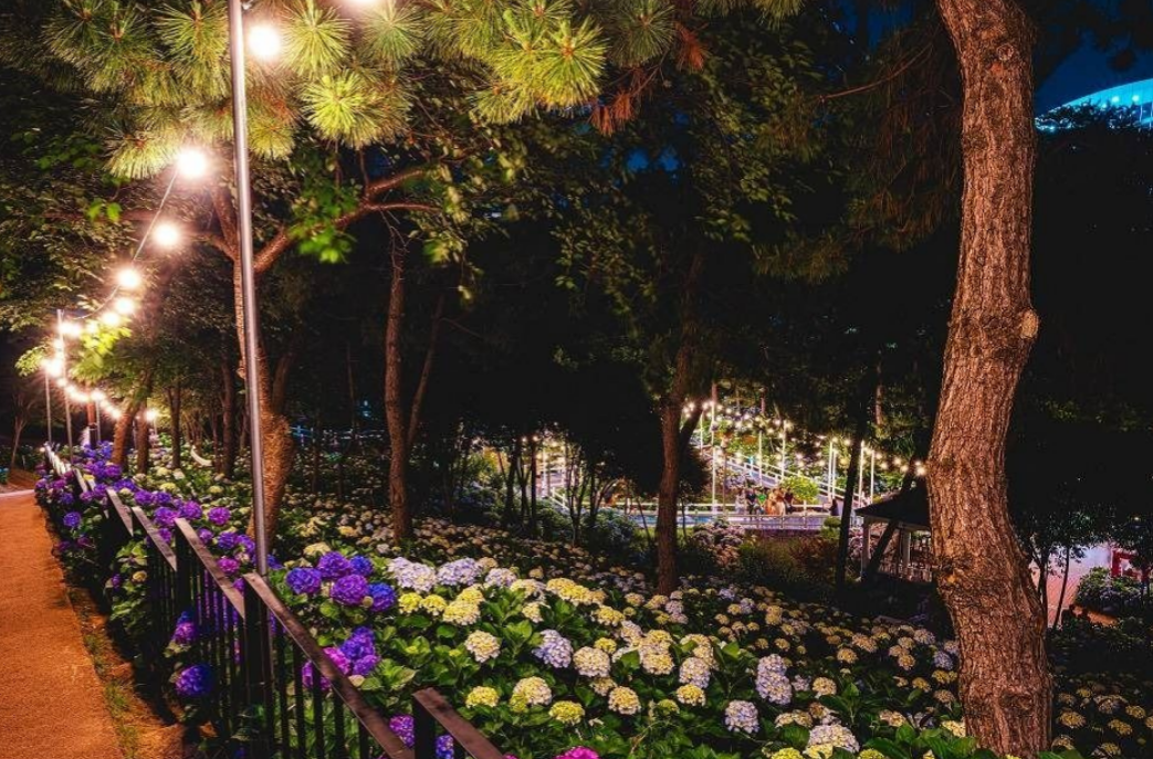 축제의 주인공은 단연 수국이죠! 40여 품종, 3만여 본 의 수국이 만들어내는 환상적인 풍경은 그야말로 압권이랍니다. 알록달록, 형형색색의 수국들이 저마다의 아름다움을 뽐내고 있을 텐데요. 특히, 축제장 곳곳에 마련된 감성 포토존 에서는 인생샷을 남길 수 있는 절호의 기회예요! 스트링라이트가 반짝이는 밤에는 또 다른 로맨틱한 분위기를 연출한다고 하니, 낮과 밤 모두 매력적이겠어요. 전국 사진 공모전 도 열린다고 하니, 사진에 자신 있는 분들은 멋진 작품으로 도전해 보는 것도 좋겠네요!