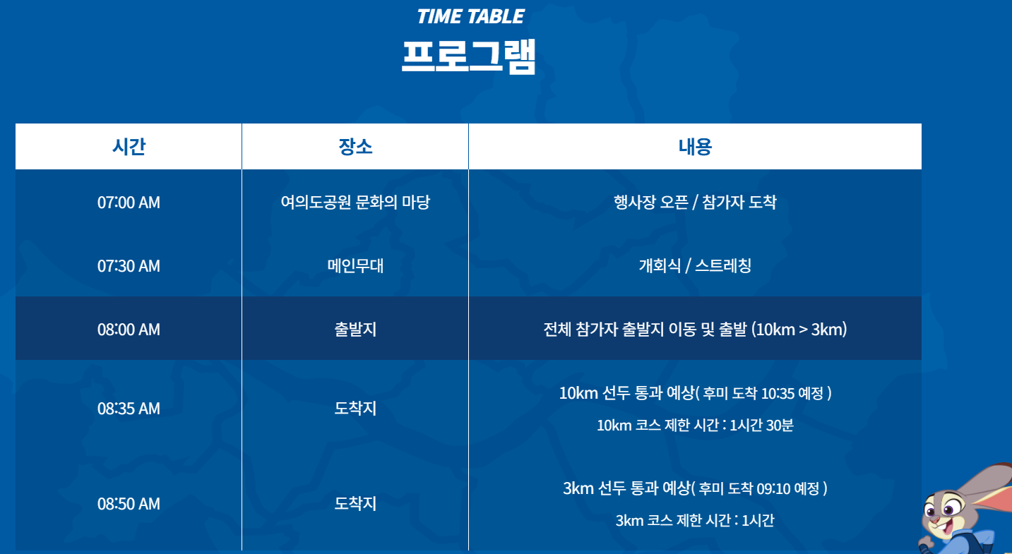 올해는 디즈니의 기대작인 '주토피아 2' 개봉 프로모션이 겹쳐서, 아마 닉과 주디 캐릭터 존이 메인 스테이지 주변에 크게 마련되지 않을까 하는 개인적인 추측을 해봐요! 이런 인기 포토존은 대기 줄이 어마어마할 테니, 사진을 꼭 찍고 싶다면 전략을 잘 세워야 합니다. 10km 참가자라면 레이스 종료 후, 3km 참가자라면 레이스 직후가 비교적 여유로운 포토 타임을 즐길 수 있는 황금 시간대일 거예요.